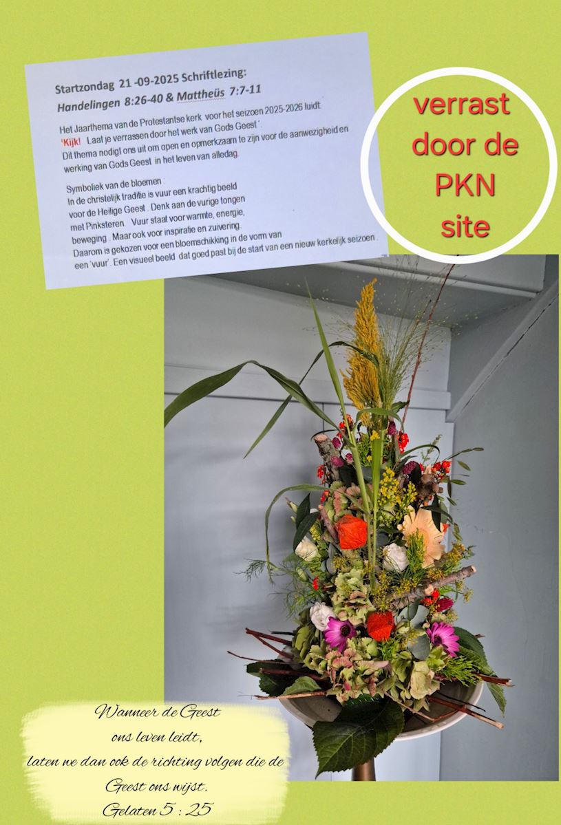 Tweede zondag in de 40-dagentijd Het thema van de dienst is: ‘Jezus met de dood bedreigd’ ![]() Uitleg bij het bloemstuk: We zijn op weg naar Pasen! Maar eerst komt nog de Goede Vrijdag. De paarse Kruisdistels beelden het lijden van Jezus Christus uit, de rode Gerbera’s zijn de tranen die als bloed worden vergoten. Zie je de treurende Ereprijs? Dat zijn de leerlingen die met Hem oplopen. Achterin het bloemstuk, verscholen tussen de groene Olijftakken staat een kruis. Op het dode hout zitten de knoppen van het nieuwe leven al. En boven dat alles uit, omhoog gehouden door het kruis staat de Roos, wit als sneeuw….. |